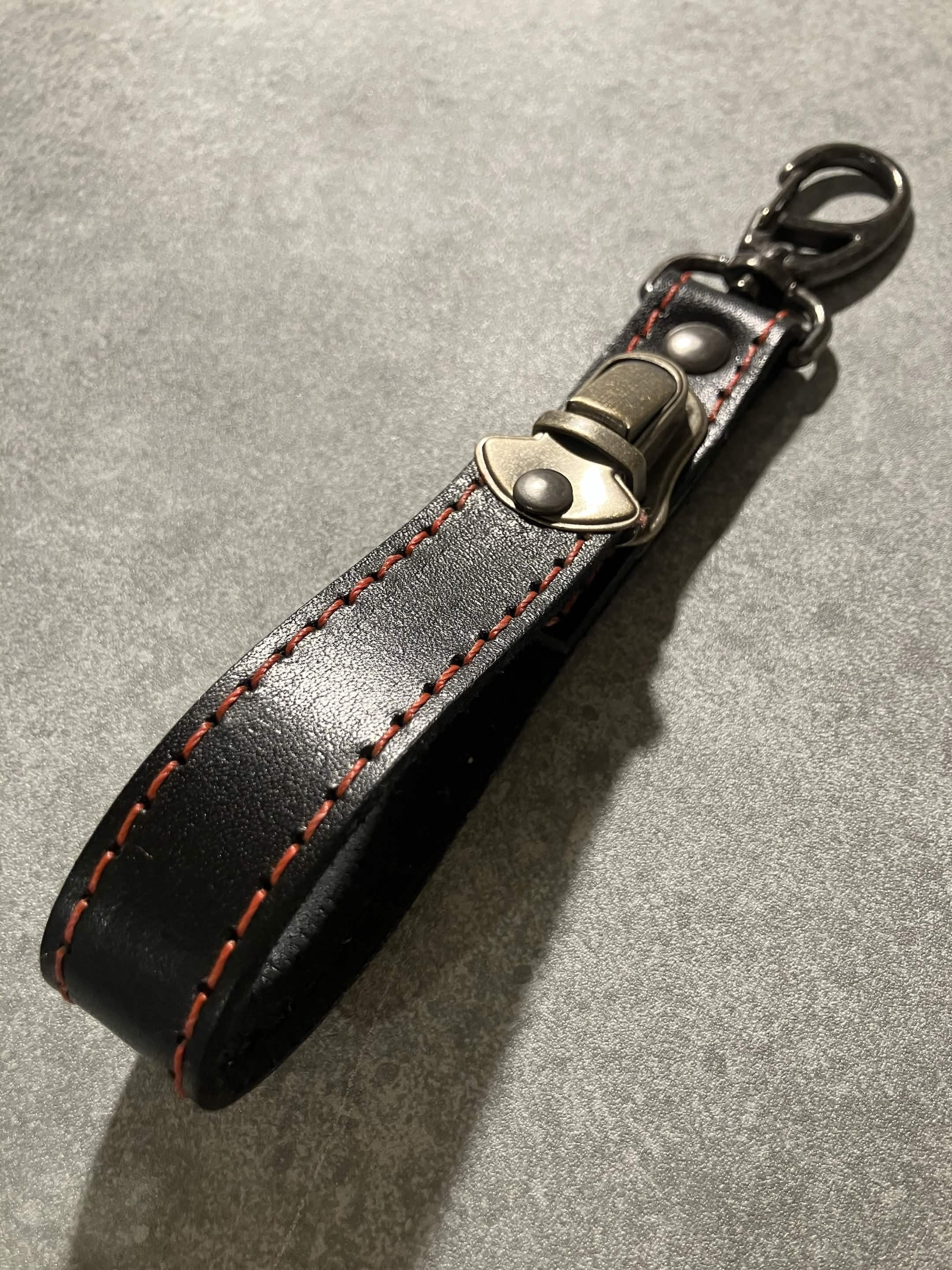 ヨーヨーホルダー ブラックのブラック金具、レッドステッチバージョン